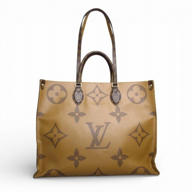 ルイヴィトン LOUIS VUITTON 美品 オンザゴー GM モノグラム ジャイアント トートバッグ ショルダーバッグ M44576 ブラウン キャメル【ブランド】ルイヴィトン LOUIS VUITTON【実寸サイズ】持ち手の長さ:33cm ヨコ:40cm タテ:32cm マチ:17cm ショルダーの長さ:66cm 【色】ブラウン キャメル【仕様】ファスナーポケット×1 オープンポケット×2【状態】・内側ポケット部分に小さなペン跡、ハンドルコバ部分に若干の傷がありますが、使用感が少なく、状態の良い商品です。 ※あくまでも中古品ですので掲載写真や記載内容をご確認いただき、ご理解の上ご購入ください。 【ランク】A